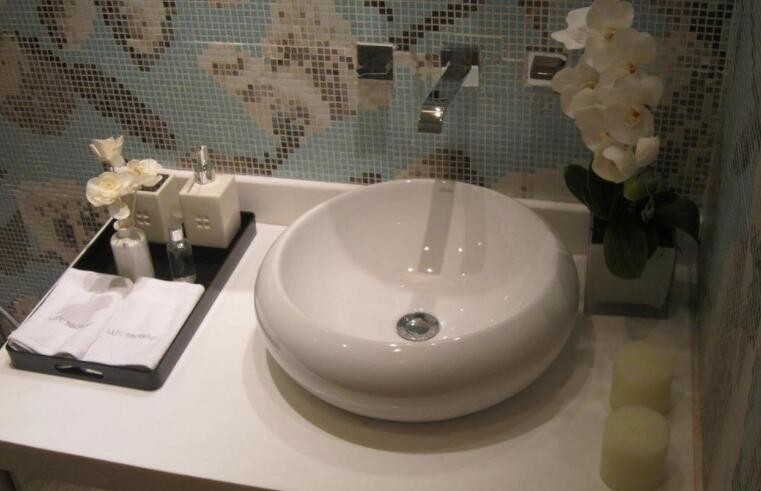 3、深度挑选:洗脸池的深度应与水龙头的水流强度相符,若水龙头的出水量较强的话,应尽量选用深一些的洗脸池,这样能够避免水溅到自己身上,方便人们使用。